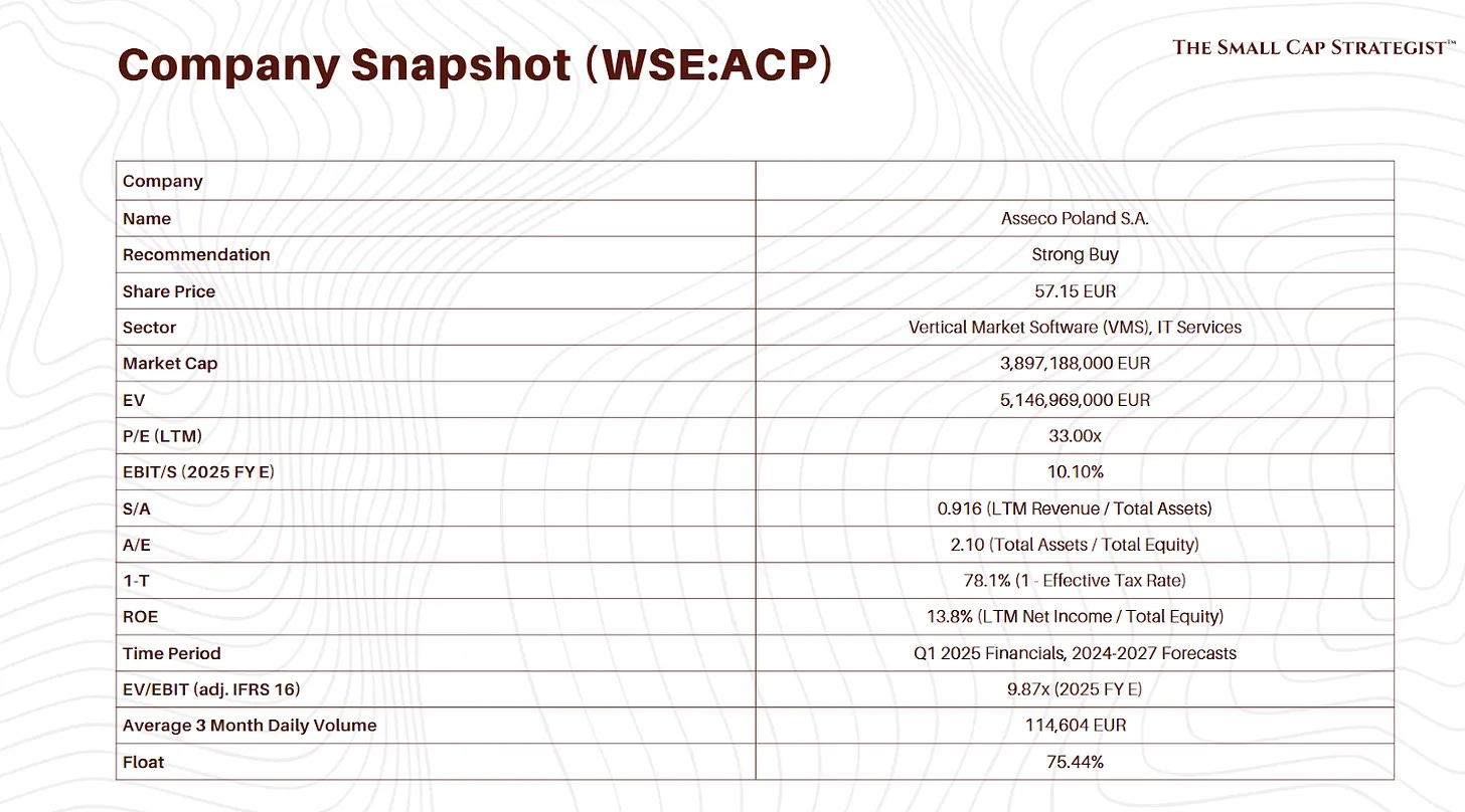 At first glance, Asseco's trailing P/E ratio of 33x may seem high. However, this multiple is based on historical performance and does not account for the impending operational transformation. A more forward-looking metric, the 2025 forecast EV/EBIT multiple of 9.87x, suggests a much more reasonable valuation.