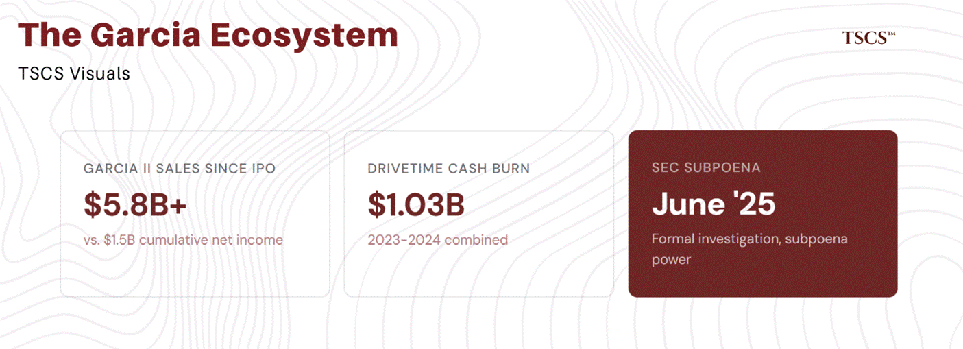 The Garcia family ecosystem. $5.8 billion extracted, $1 billion burned at DriveTime, below-market servicing fees at Bridgecrest, undisclosed VIN overlaps, and an SEC subpoena.