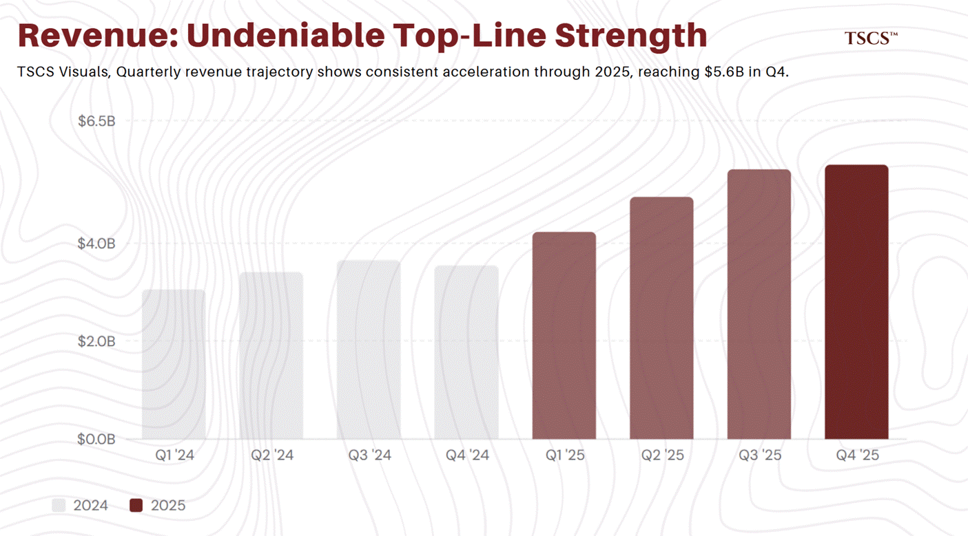 Carvana’s Q4 2025 top-line performance was undeniably strong. Revenue of $5.603 billion beat the $5.27 billion consensus by 6.8%, growing 58% year-over-year. Retail units sold reached 163,522, beating estimates of ~157,226 and growing 43% YoY. Full-year 2025 revenue hit $20.3 billion (+49% YoY), with 596,641 retail units sold.