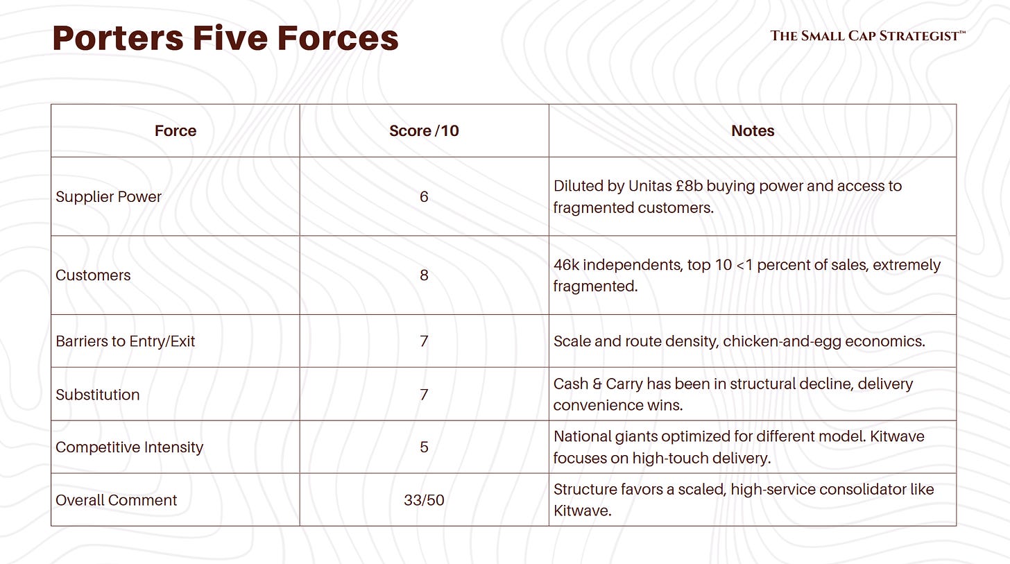 Industry Overview: UK grocery and foodservice wholesale, structurally shifting from cash-and-carry to delivered. Fragmented long tail suits a buy-and-build.