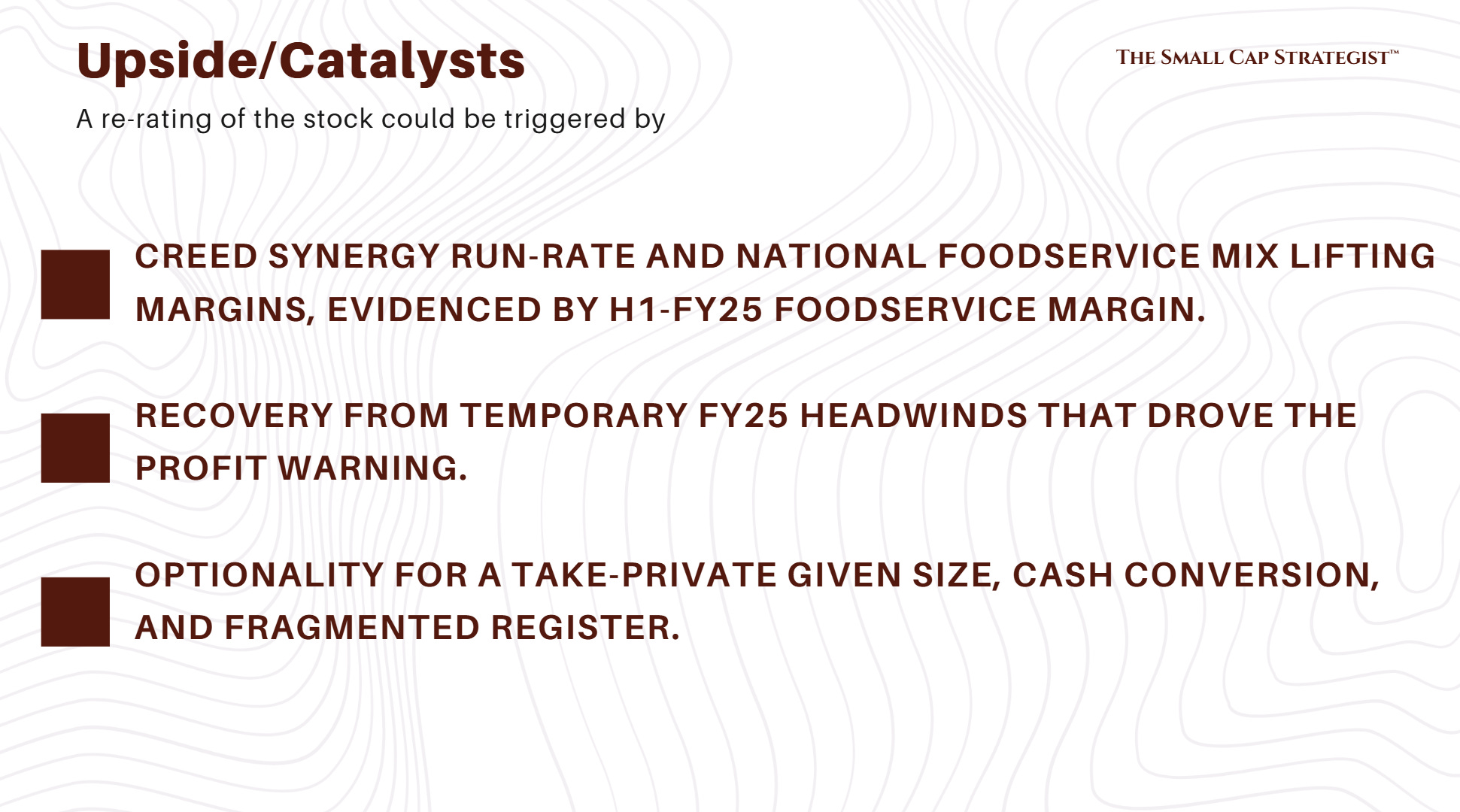 Interesting breakdown. How confident are you that Kitwave can keep integration smooth post-Creed while still protecting its 90% cash conversion? That seems like the key swing factor for whether the dividend stays safe or gets pressured by working capital.