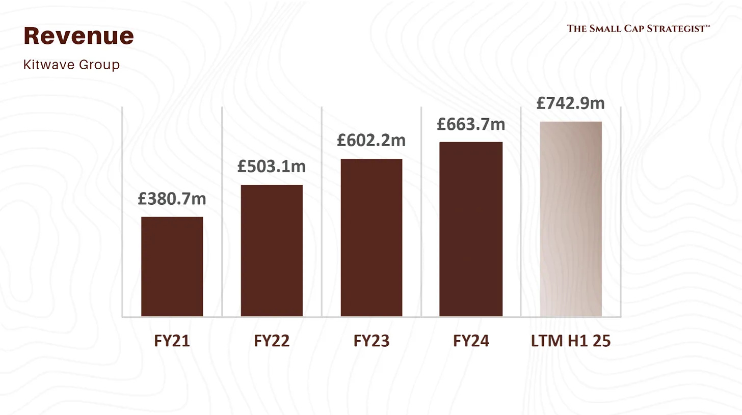 Overall: FY22 to FY24 from £503.1m to £663.7m, H1-FY25 group £376.2m.