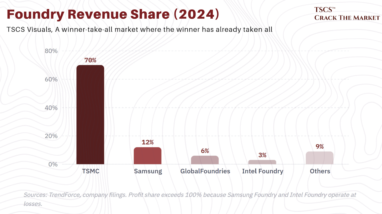 Samsung’s foundry division is loss-making at advanced nodes with disastrous 3nm yields. If the cost curve steepens further at A16 and beyond, we could see the buyer base for leading-edge equipment consolidate from three (TSMC, Samsung, Intel) to effectively one. A monopsony scenario, where TSMC holds 80%+ of leading-edge foundry volume, would shift bargaining power toward the buyer, even against monopolist equipment suppliers. TSMC could, in theory, begin extracting pricing concessions that the current oligopoly structure does not permit.