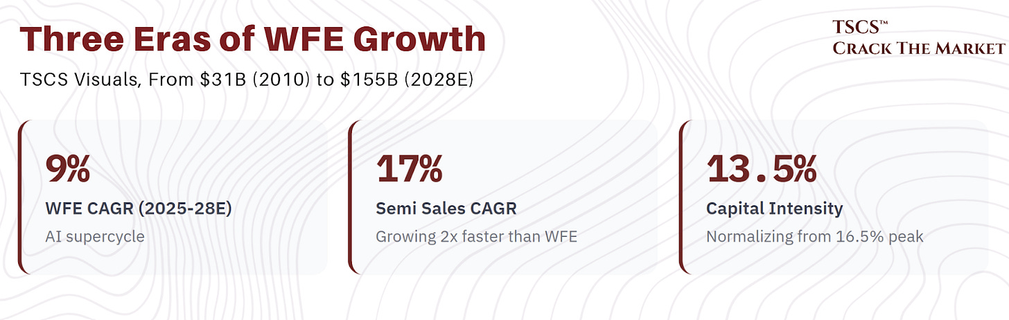 WFE growth drivers for the next decade: AI capex, reshoring, the memory supercycle, and why capital intensity math matters more than headline growth rates