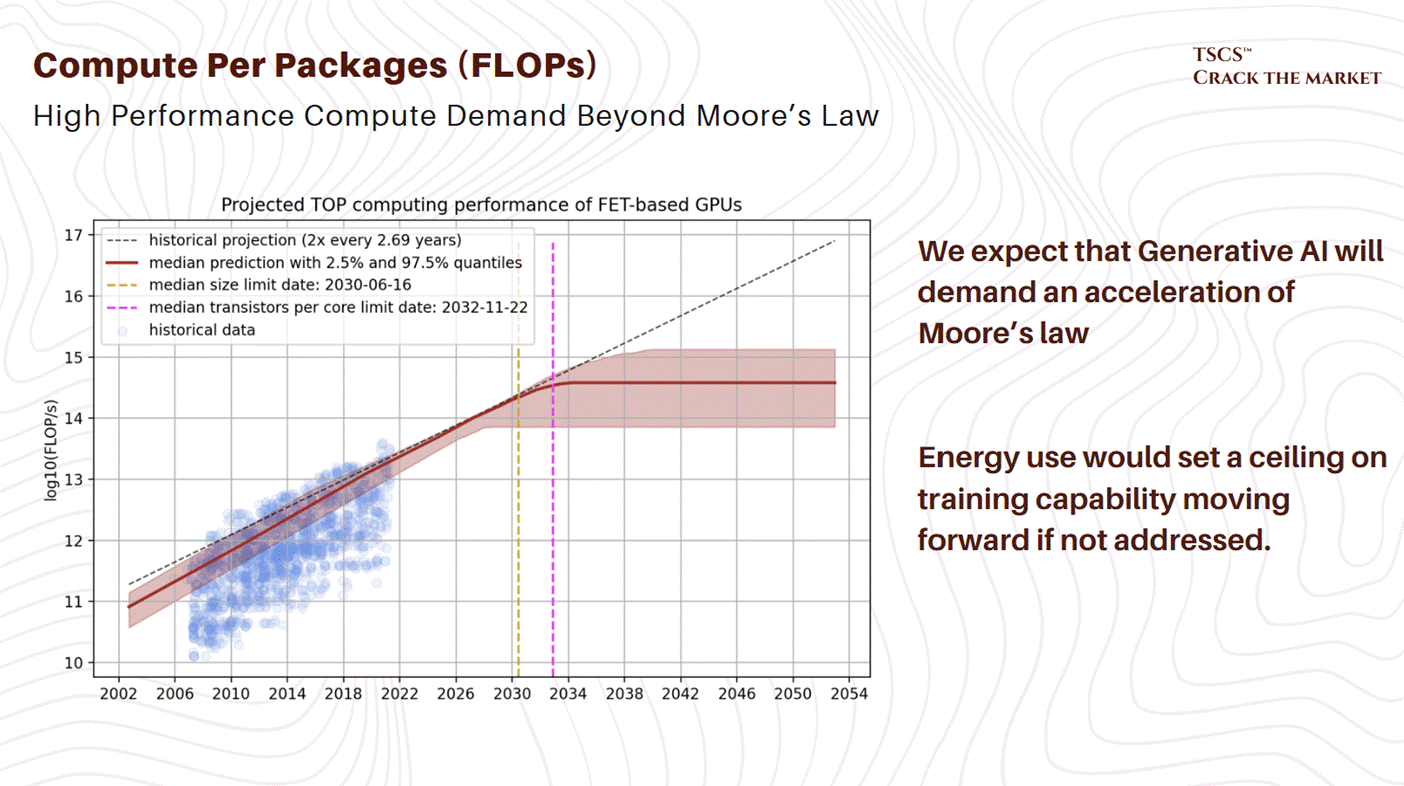 TSCS view: We want to be direct about something. The visibility on this roadmap is real, but it is not the same as certainty. CFET is a laboratory concept, not a production technology. High-NA EUV has shipped fewer than a dozen systems. The history of semiconductor manufacturing is littered with technologies that worked in the lab and failed in the fab (450mm wafers, anyone?). What gives us confidence is not that every roadmap milestone will hit on schedule, but that the direction of travel is unambiguous: more complexity, more equipment intensity, more spending per node. Even if A16 slips by a year or CFET arrives late, the secular trend of rising WFE per unit of computing capacity is not reversing. The only scenario where semicap growth structurally disappoints is one where the world decides it needs less computing power. We do not see that scenario on any reasonable horizon.