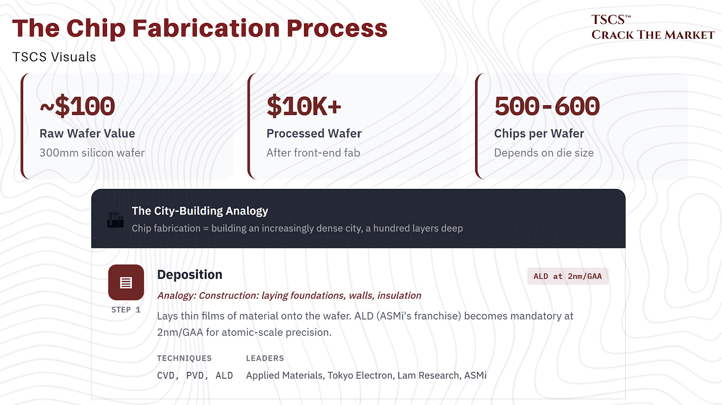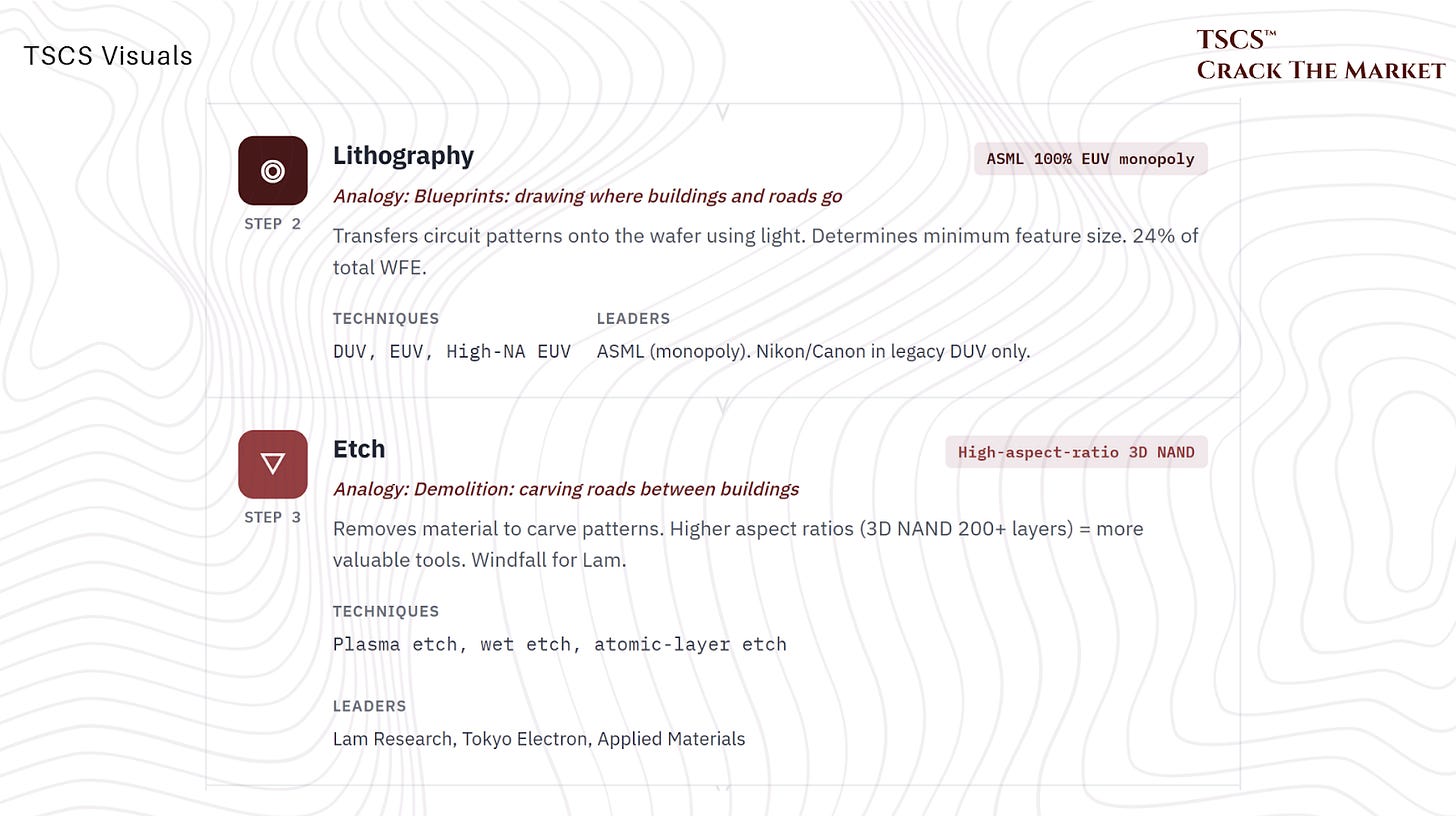 As the city gets denser (smaller transistors), the blueprints require finer resolution (ASML’s EUV). As the buildings get thinner and taller (high-aspect-ratio structures in 3D NAND and GAA transistors), the construction materials and techniques must get more sophisticated (ASMi’s ALD, Lam’s advanced etch).