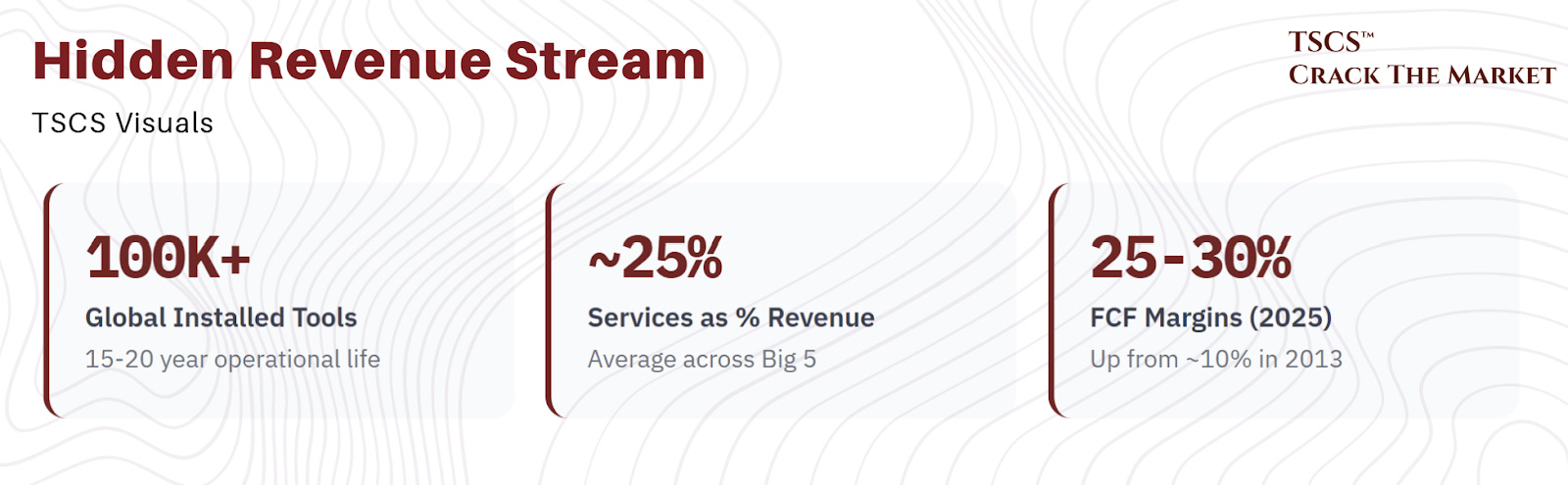 Equipment intensity per node is rising structurally. Competition is frozen by antitrust and physics. AI capex is creating the most powerful demand signal since the smartphone era. FCF margins have expanded from 10% in 2013 to 20 to 30% today with no sign of reversal.