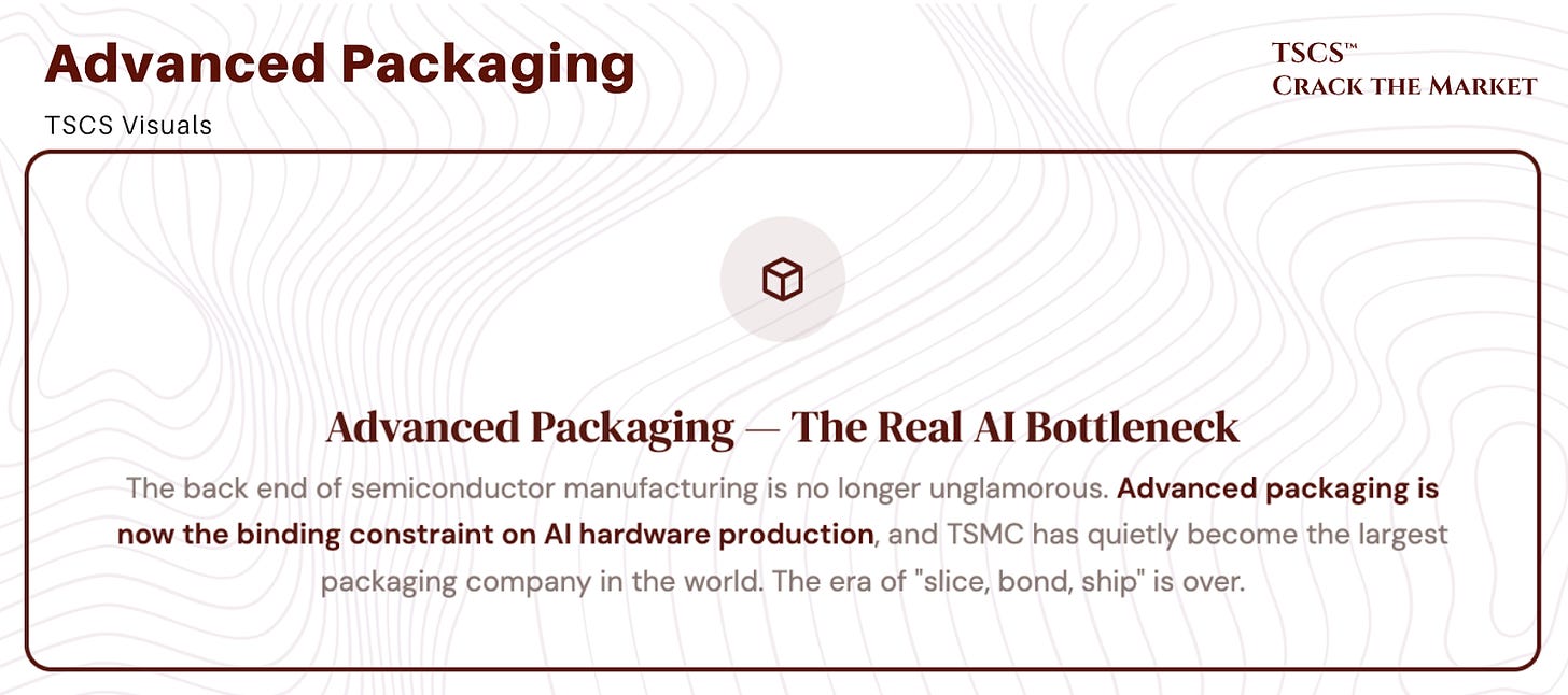 That era is over. Advanced packaging is now the binding constraint on AI hardware production, and TSMC has quietly become the largest packaging company in the world.