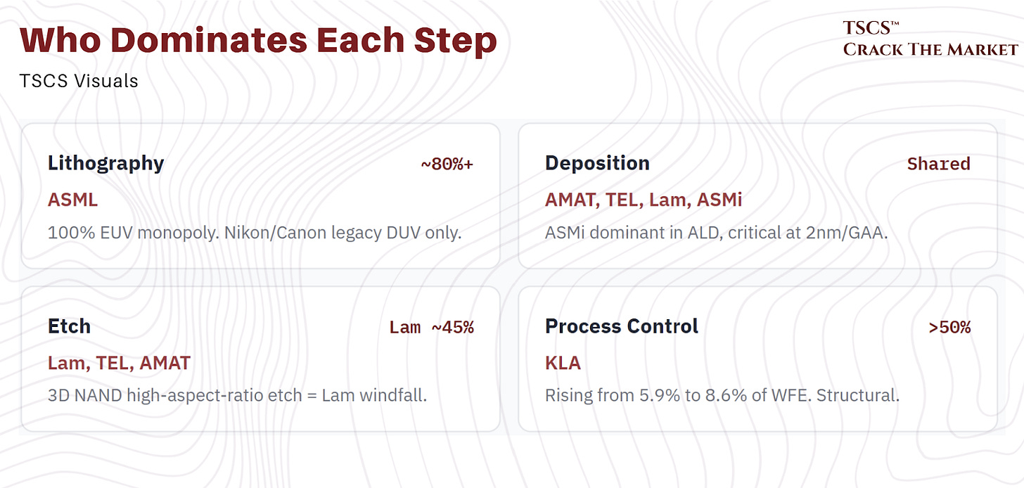 The semicap oligopoly: who does what, why consolidation is frozen, and who owns which chokepoints