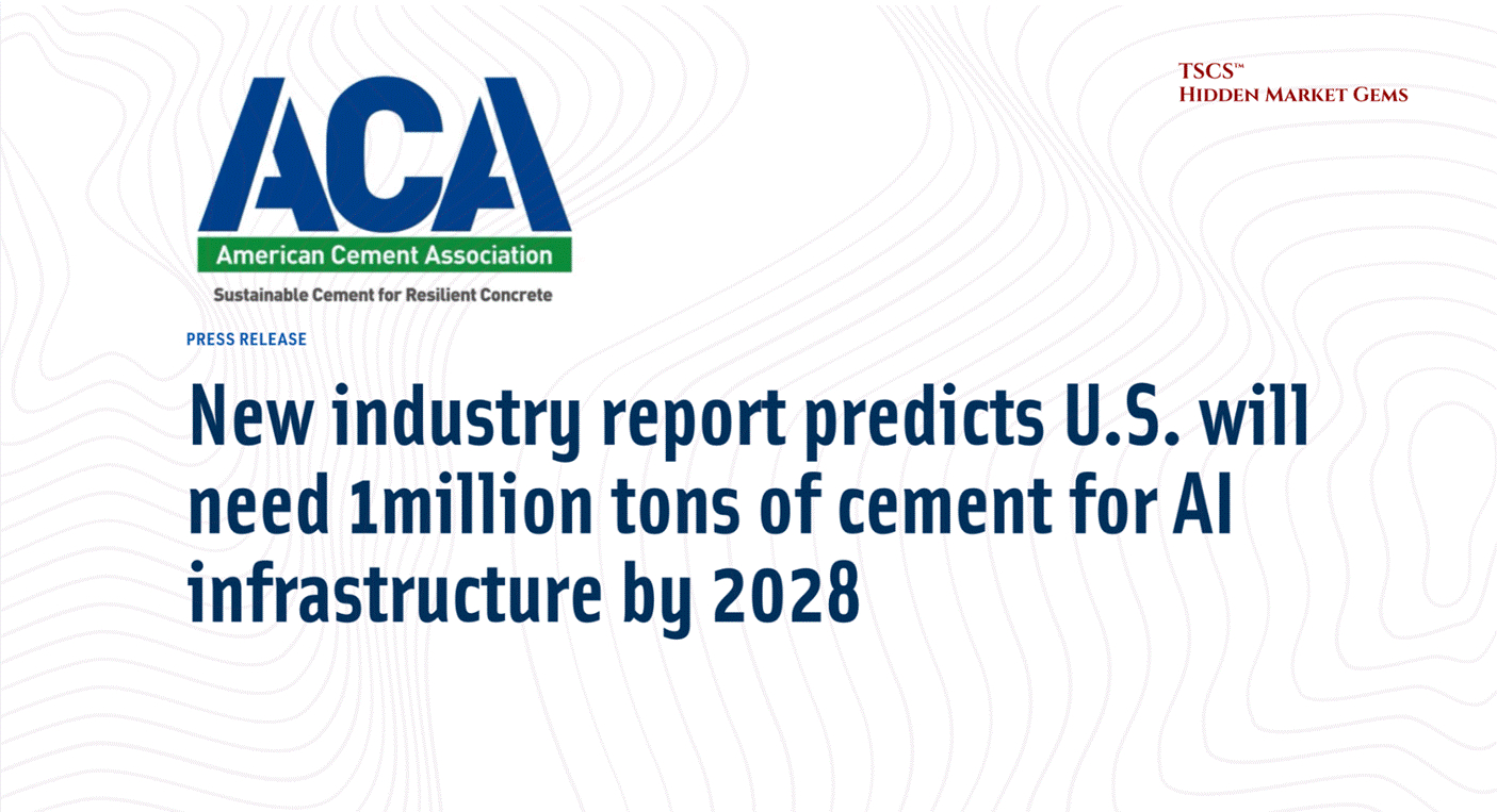 Then there is the concrete. The American Cement Association predicts the U.S. will need 1 million metric tons of cement by 2028 just for AI data centers. Cement (the binding agent in concrete) is one of the most carbon-intensive materials on Earth. Cement production accounts for approximately 8% of global CO2 emissions.