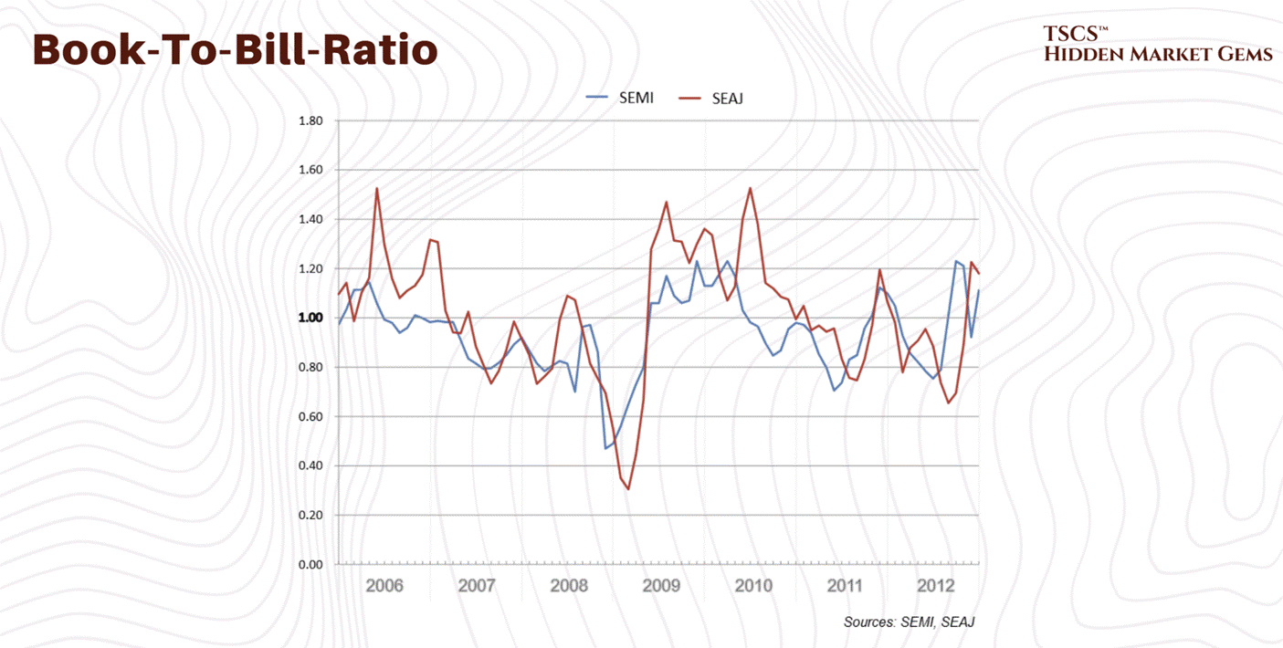 In the semiconductor world (the chips filling these data centers), this is the heartbeat of the supply chain. It is the ratio of orders taken (booked) to products shipped (billed).