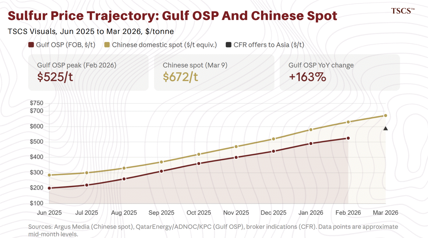 The Ras Laffan strikes also removed approximately 180,000 tonnes of annual sulfur exports, roughly 6% of Qatar's total, compounding the seaborne sulfur deficit through infrastructure damage rather than mere transit disruption. Unlike the Hormuz shipping blockade, this sulfur supply does not return with a ceasefire.