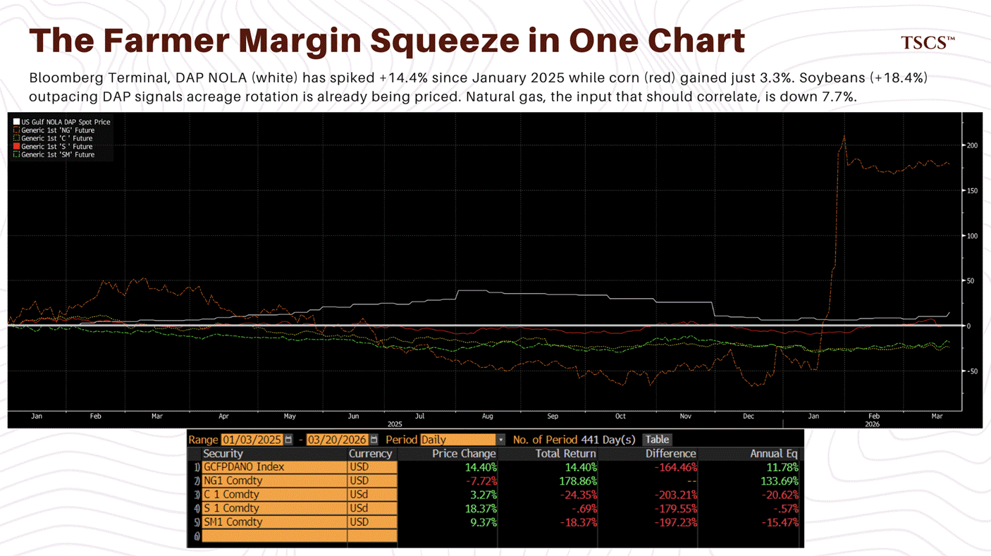 In our oil analysis , we covered the crude repricing. In our tanker and LNG work “Operation Epic Fury” and “8 Days to Kuwait”. “Oil Isn’t The Trade”, we covered the shipping dislocation. In “Party’s Over” and “The Reversion Trade”, we flagged fertilizer as “the second-order effect with the longest tail and the least market attention” and promised a dedicated piece.