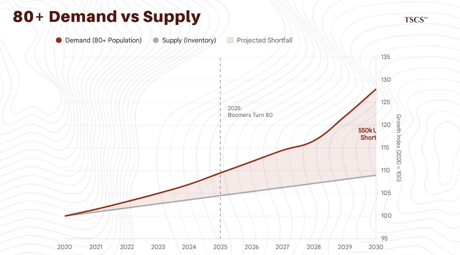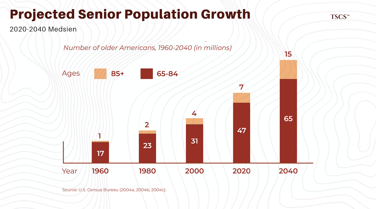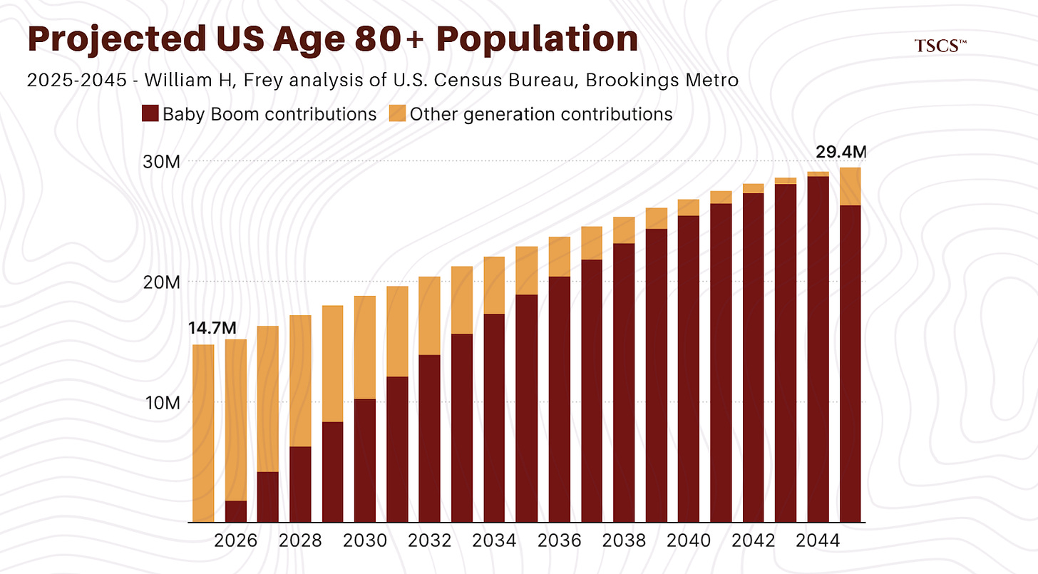 Demand is Inelastic: You can’t delay aging. The 80+ cohort is coming, and they are sicker than ever.