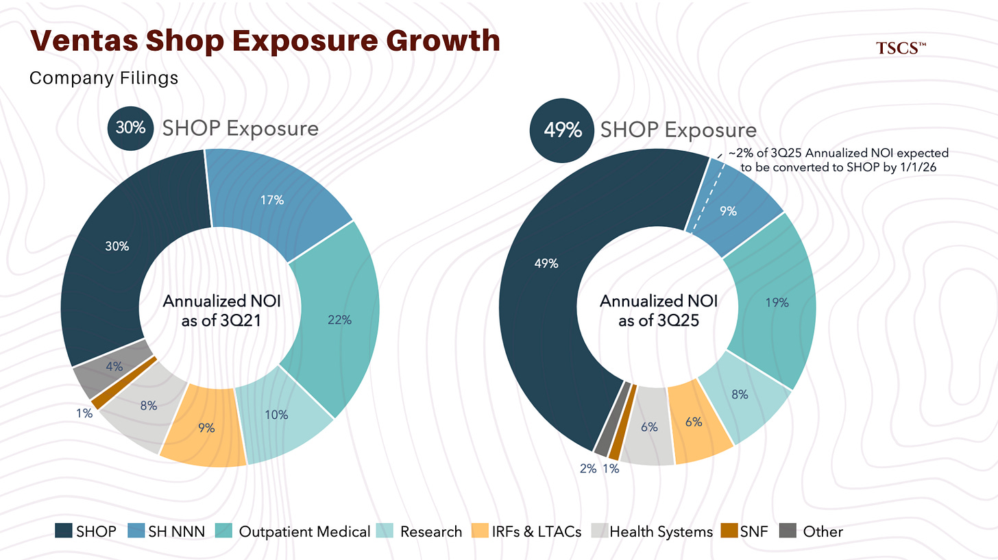 Ventas is also pivoting hard to SHOP (Senior Housing Operating Portfolio) growth. The results are validating the strategy: in Q3 2025, they posted 15.9% year-over-year Same-Store Cash NOI growth in their SHOP segment. That is an insane growth number for a real estate asset class.