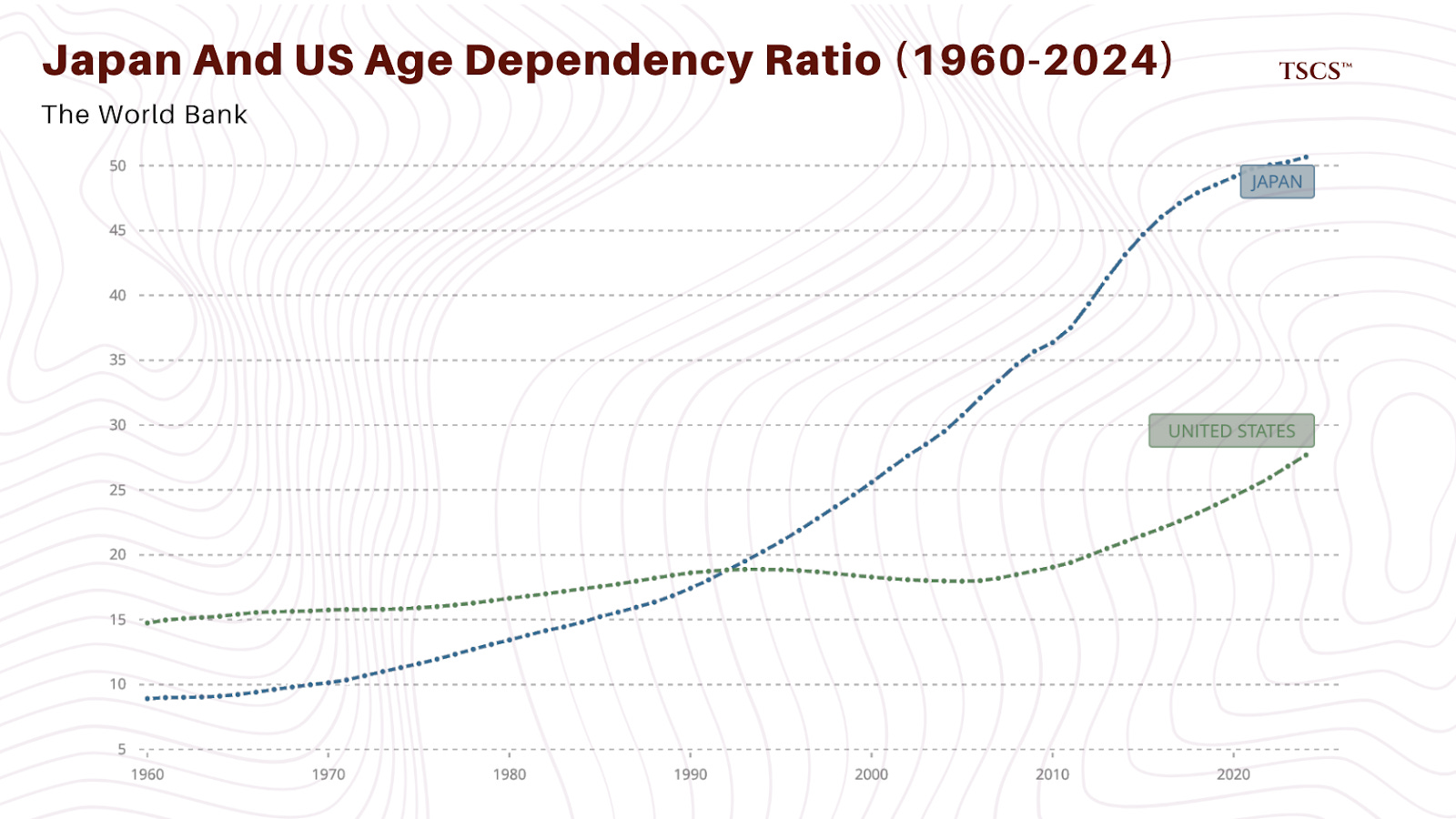 When you overlay the US old-age dependency ratio curve against Japan’s, shifting the US data back by roughly 15 years, the lines are nearly identical. We are walking the exact same path, just a decade and a half behind. This suggests that the US will inevitably face the same crises: a collapse of family care capacity, a spike in social hospitalization, and eventually, a forced federal intervention similar to LTCI, whether we like the politics of it or not.