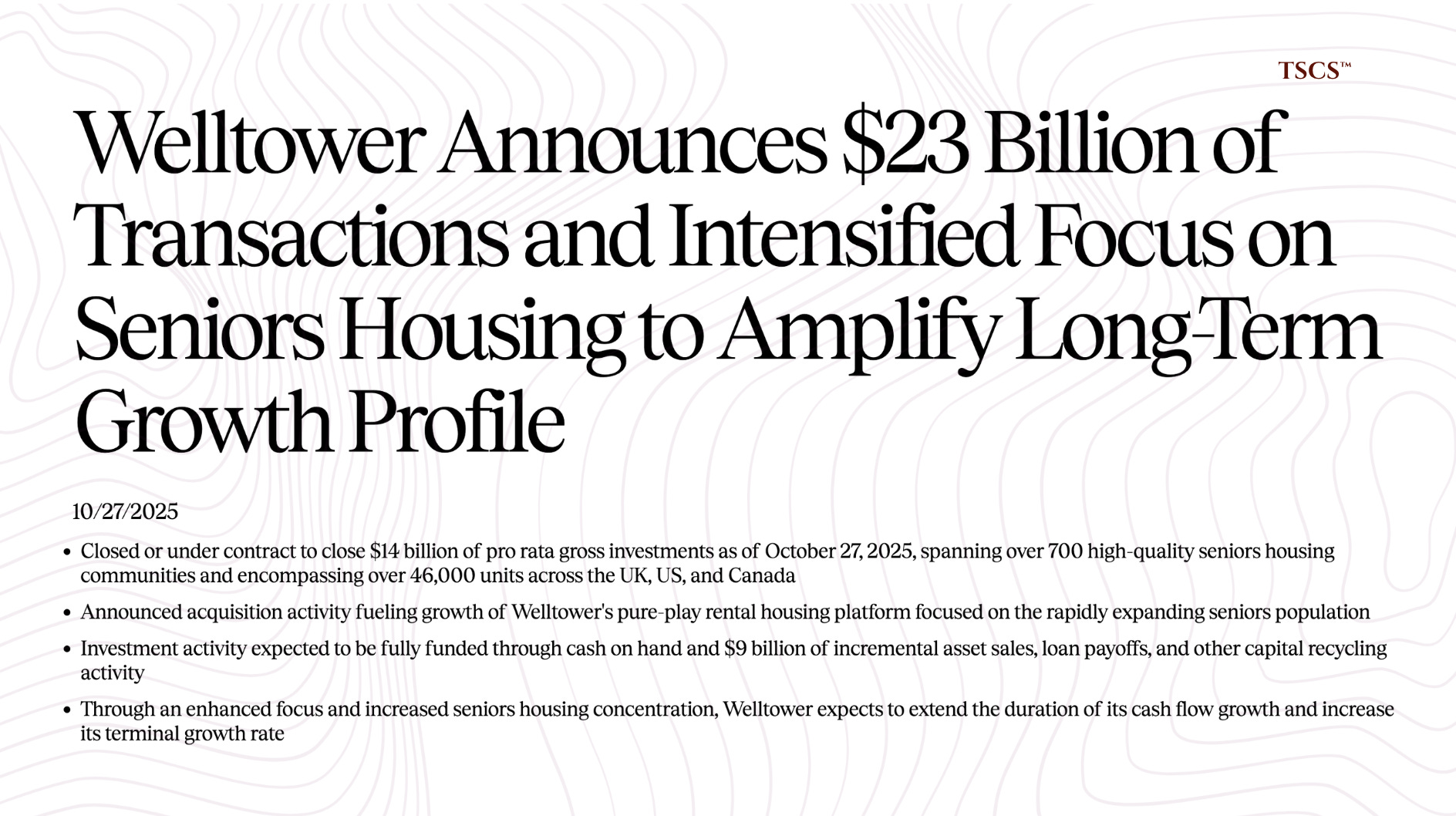 Welltower has gone “all-in.” They are shifting to a “pure-play rental housing platform for the silver economy”. They aren’t dabbling in medical office buildings (MOBs) as much anymore; they are selling those assets, disposing of $10 billion in assets YTD, to fund senior housing acquisitions.
